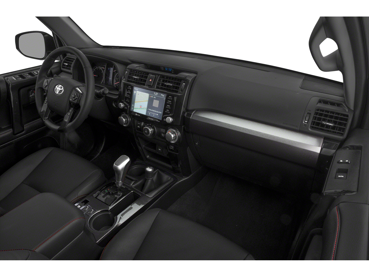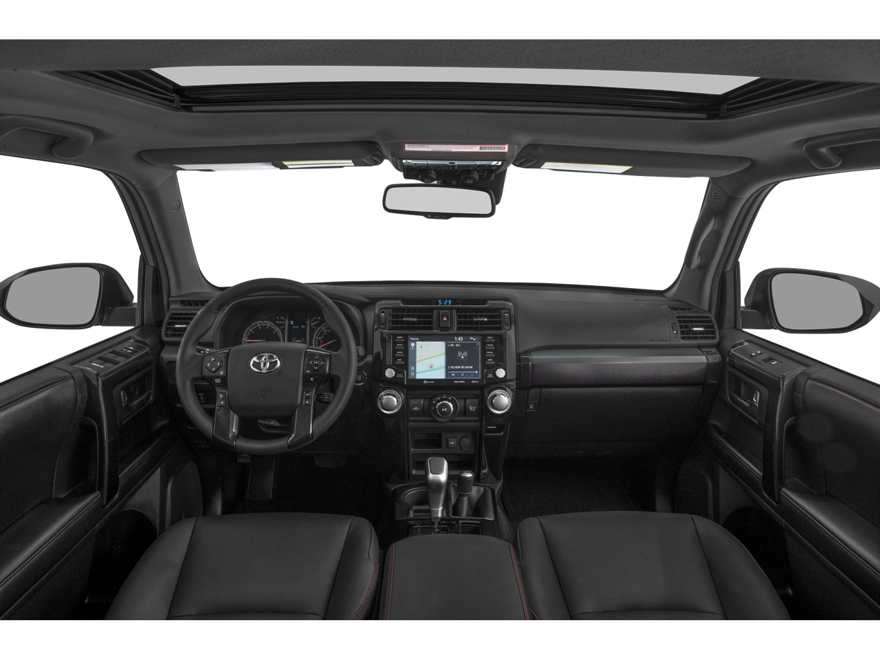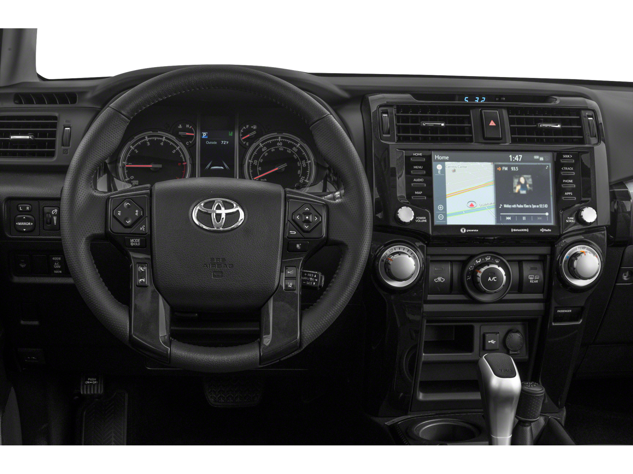 Inside, the cabin is thoughtfully designed with premium Softex-trimmed heated front seats, a leather-wrapped steering wheel, and an advanced navigation system. The sliding rear cargo deck and under-floor storage compartment provide ample space for all your gear, making this 4Runner the ultimate companion for your next adventure.