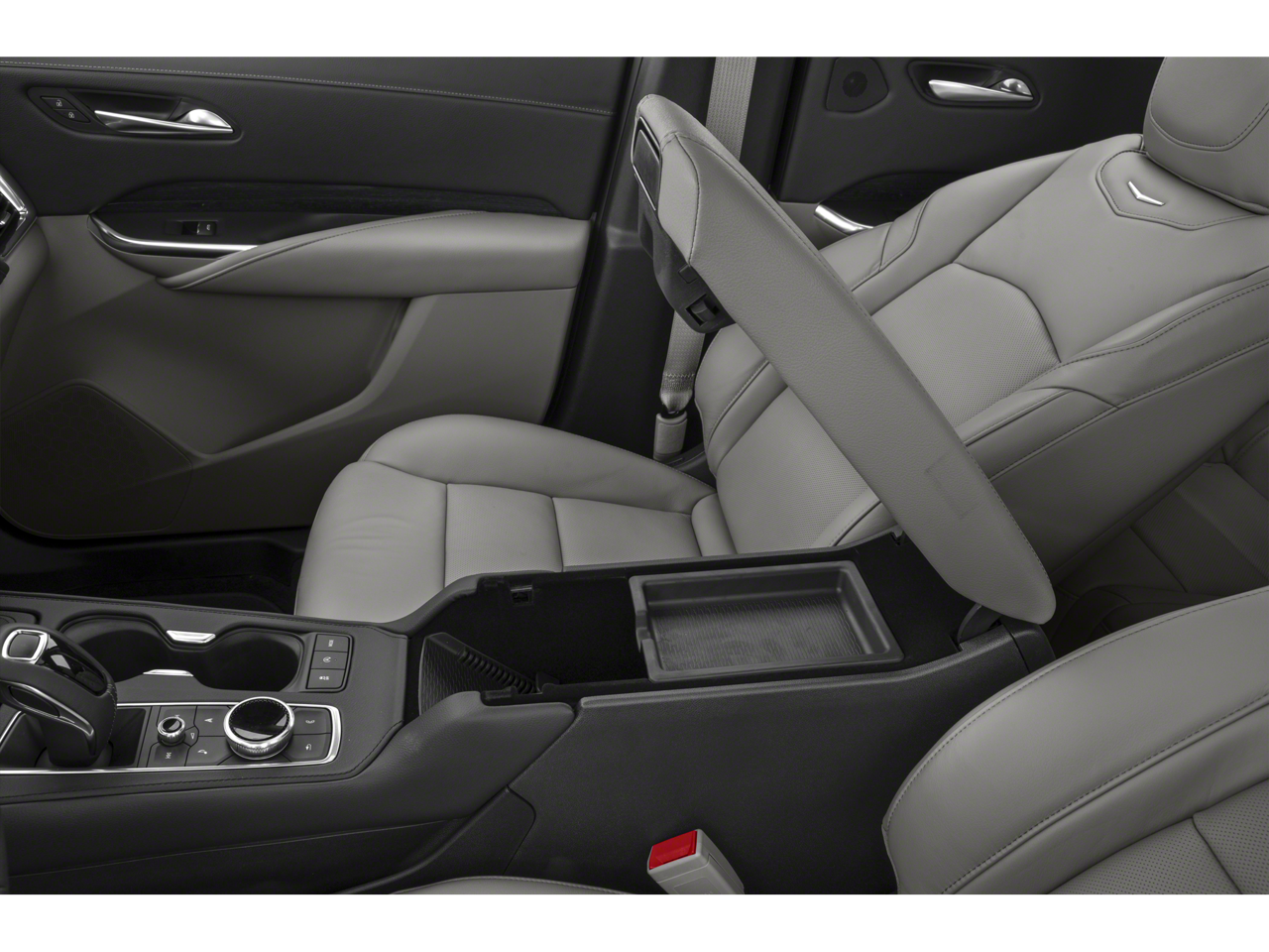 - Opens or closes when the system senses the key fob and the driver extends their foot under the left-hand side of the rear bumper over an image of the Cadillac Crest projected under the vehicle